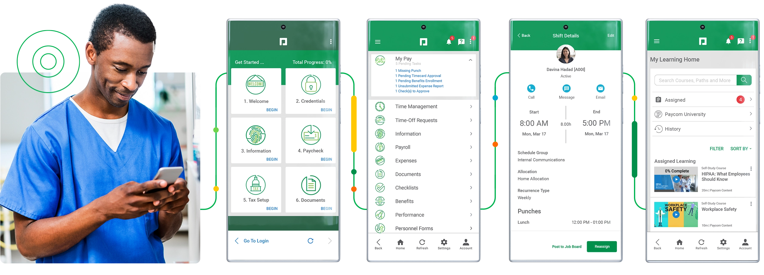 Paycom makes it easy to track and manage licenses, certifications and more in one place. Employees upload their documents and automatically receive a reminder when credentials are about to expire. In the same software, you can facilitate ongoing training with health care-specific content subscriptions, accessible anytime, anywhere.