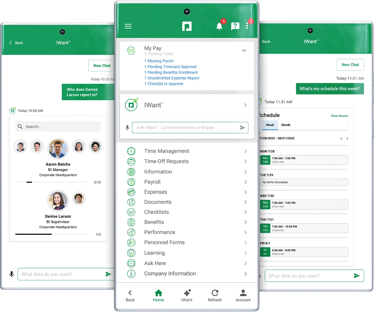 Instead of hunting for the employee data you need, just ask IWant. The industry’s first command-driven AI engine in a single database, IWant searches employee profiles and management dashboards to deliver instant, accurate results every time.