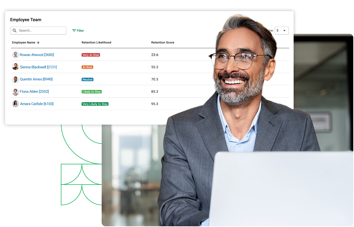 Access is permission‑based. HR teams, managers, executives and other strategic users only see the level of retention information their organization allows.